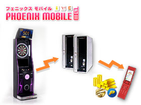 - PHOENIXDARTSでは、PHOENicAカード(フェニックスカード)を使用してプレイすると、データがインターネット経由でサーバに蓄積され、「フェニックス モバイル」にて携帯電話で様々なプレイデータをリアルタイムに確認することができます。